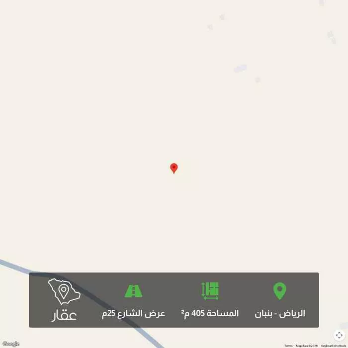 405 م² أرض في بنبان، الرياض معروضة بسعر ٩٤٩٬٣٢٠ ريال، أعلى بنسبة 18% من متوسط سعر الحي البالغ ٨٠٤٬٥٦٢٫٥ ريال. بناءً على 944 عقار مشابه.