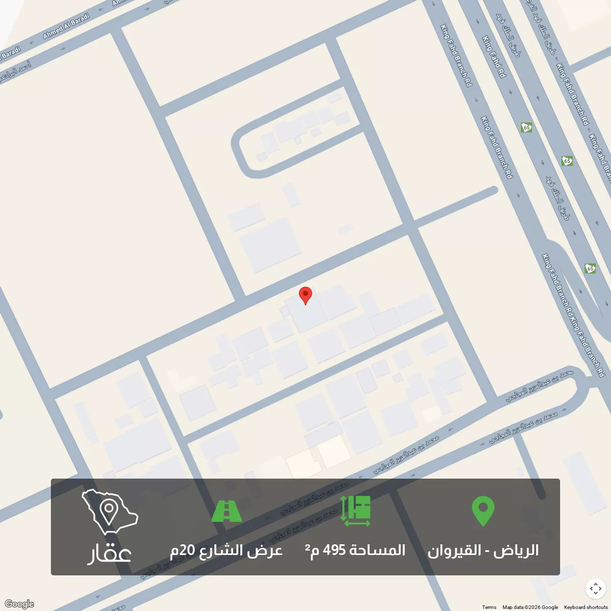 495 م² أرض في القيروان، الرياض معروضة بسعر ٥٬٤٤٥٬٠٠٠ ريال، أعلى بنسبة 61% من متوسط سعر الحي البالغ ٣٬٣٧٥٬٠٠٠ ريال. بناءً على 212 عقار مشابه.
