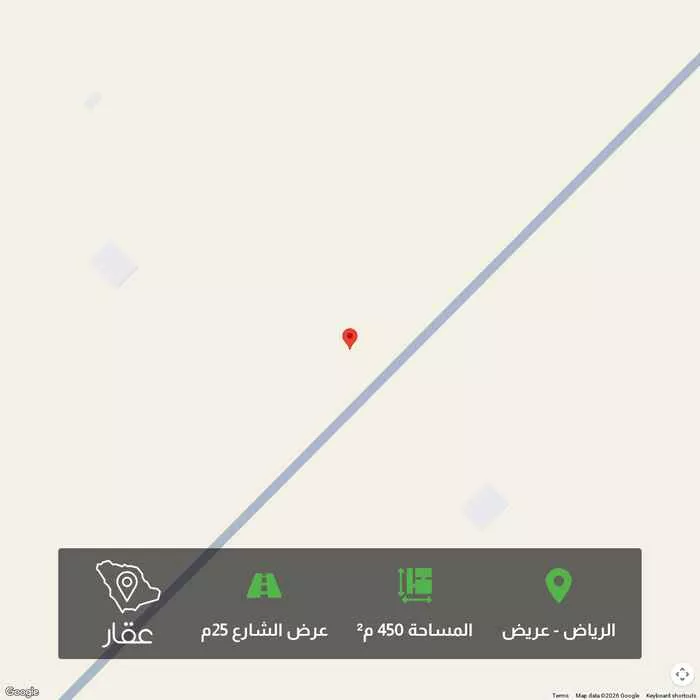 450 م² أرض في عريض، الرياض معروضة بسعر ٤٧٢٬٥٠٠ ريال، أعلى بنسبة 18% من متوسط سعر الحي البالغ ٣٩٩٬٦٠٠ ريال. بناءً على 653 عقار مشابه.