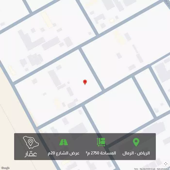 2750 م² أرض في الرمال، الرياض معروضة بسعر ١٢٬٣٧٥٬٠٠٠ ريال، أعلى بنسبة 416% من متوسط سعر الحي البالغ ٢٬٤٠٠٬٠٠٠ ريال. بناءً على 270 عقار مشابه.