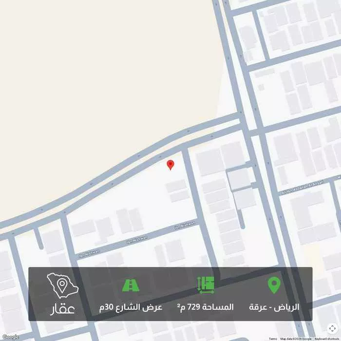عرض على Aqarللبيع ارض تجاري سكتي في حي عرقة قريبة من مسك شارعين 30 شمالي و١٥ شرقي