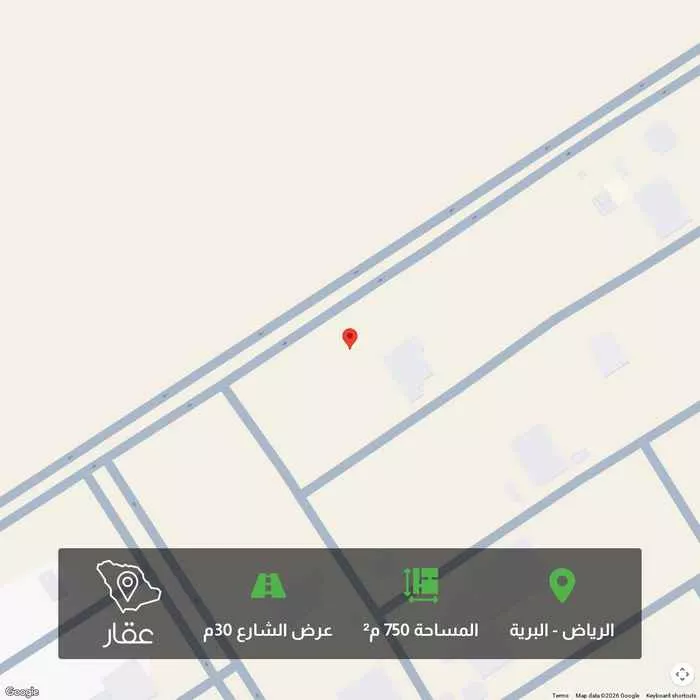 750 م² أرض في البرية، الرياض معروضة بسعر ١٬٥٠٠٬٠٠٠ ريال، أعلى بنسبة 80% من متوسط سعر الحي البالغ ٨٣٤٬٧٥٠ ريال. بناءً على 30 عقار مشابه.