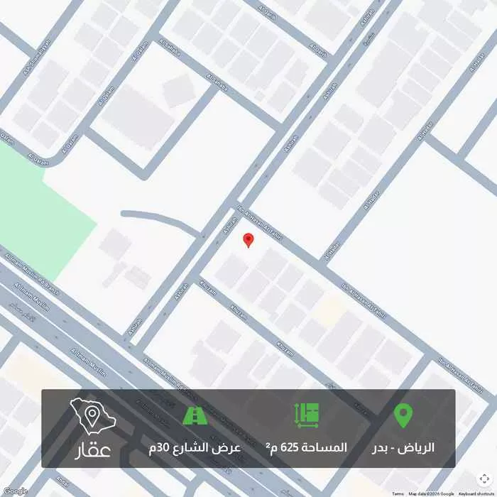 625 م² أرض في بدر، الرياض معروضة بسعر ١٬٥٩٣٬٧٥٠ ريال، أعلى بنسبة 14% من متوسط سعر الحي البالغ ١٬٤٠٠٬٨٦٥ ريال. بناءً على 88 عقار مشابه.