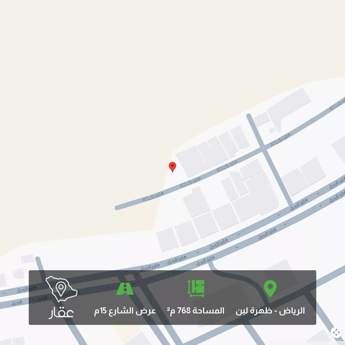 عرض على Aqarارض سكنية بحي لبن مساحة 768.5 م واجهه جنوبيه شارع عرض 15 م