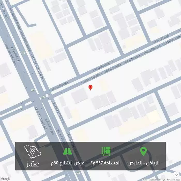 537 م² أرض في العارض، الرياض معروضة بسعر ٣٬٤٩٠٬٥٠٠ ريال، أعلى بنسبة 8% من متوسط سعر الحي البالغ ٣٬٢٤٢٬٦٠٠ ريال. بناءً على 364 عقار مشابه.