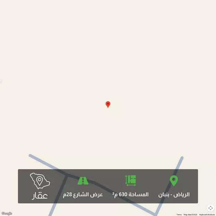 630 م² أرض في بنبان، الرياض معروضة بسعر ٧٥٦٬٠٠٠ ريال، أقل بنسبة 6% من متوسط سعر الحي البالغ ٨٠٤٬٥٦٢٫٥ ريال. بناءً على 944 عقار مشابه.