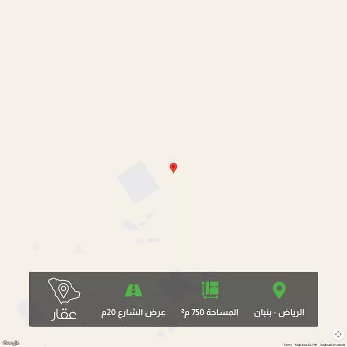 750 م² أرض في بنبان، الرياض معروضة بسعر ٩٧٥٬٠٠٠ ريال، أعلى بنسبة 21% من متوسط سعر الحي البالغ ٨٠٤٬٥٦٢٫٥ ريال. بناءً على 944 عقار مشابه.