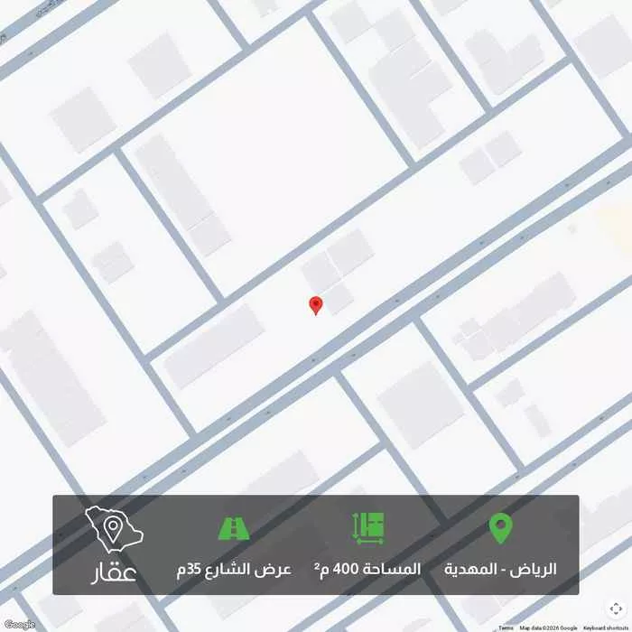 عرض على Aqarأرض تجاري سكني بحي المهدية بمساحة 400 م الاطوال 20*20 الواجهة جنوبية مناسبة للاستثمار بالشقق والوحدات السكنية