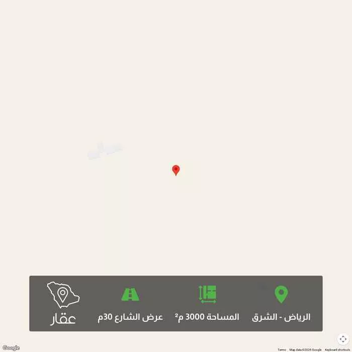 3000 م² أرض في الشرق، الرياض معروضة بسعر ٢٬٧٠٠٬٠٠٠ ريال، أعلى بنسبة 351% من متوسط سعر الحي البالغ ٥٩٨٬٩٥٠ ريال. بناءً على 650 عقار مشابه.