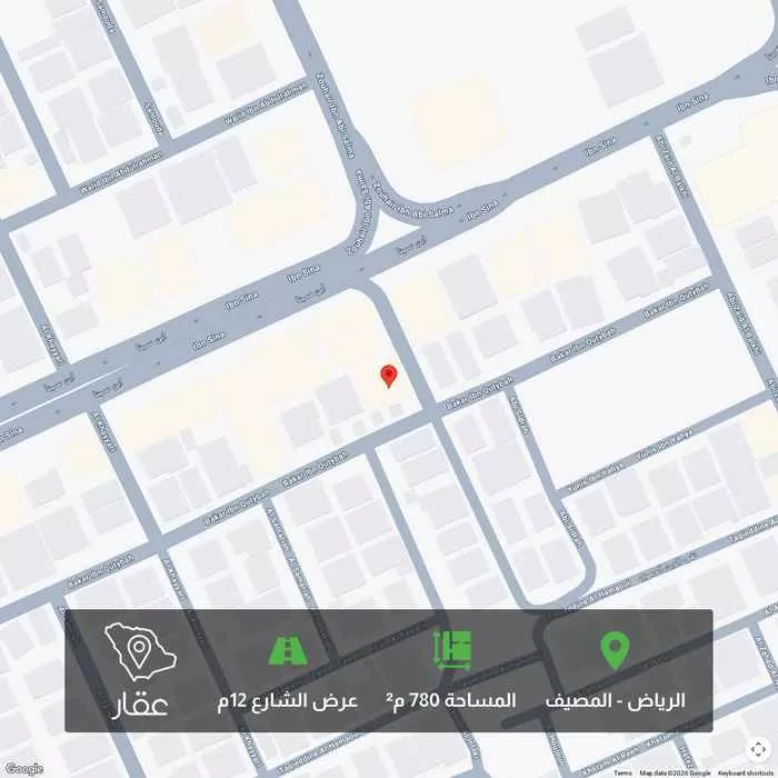 780 م² أرض في المصيف، الرياض معروضة بسعر ٥٬٤٦٠٬٠٠٠ ريال، أعلى بنسبة 46% من متوسط سعر الحي البالغ ٣٬٧٤٤٬٠٠٠ ريال. بناءً على 31 عقار مشابه.