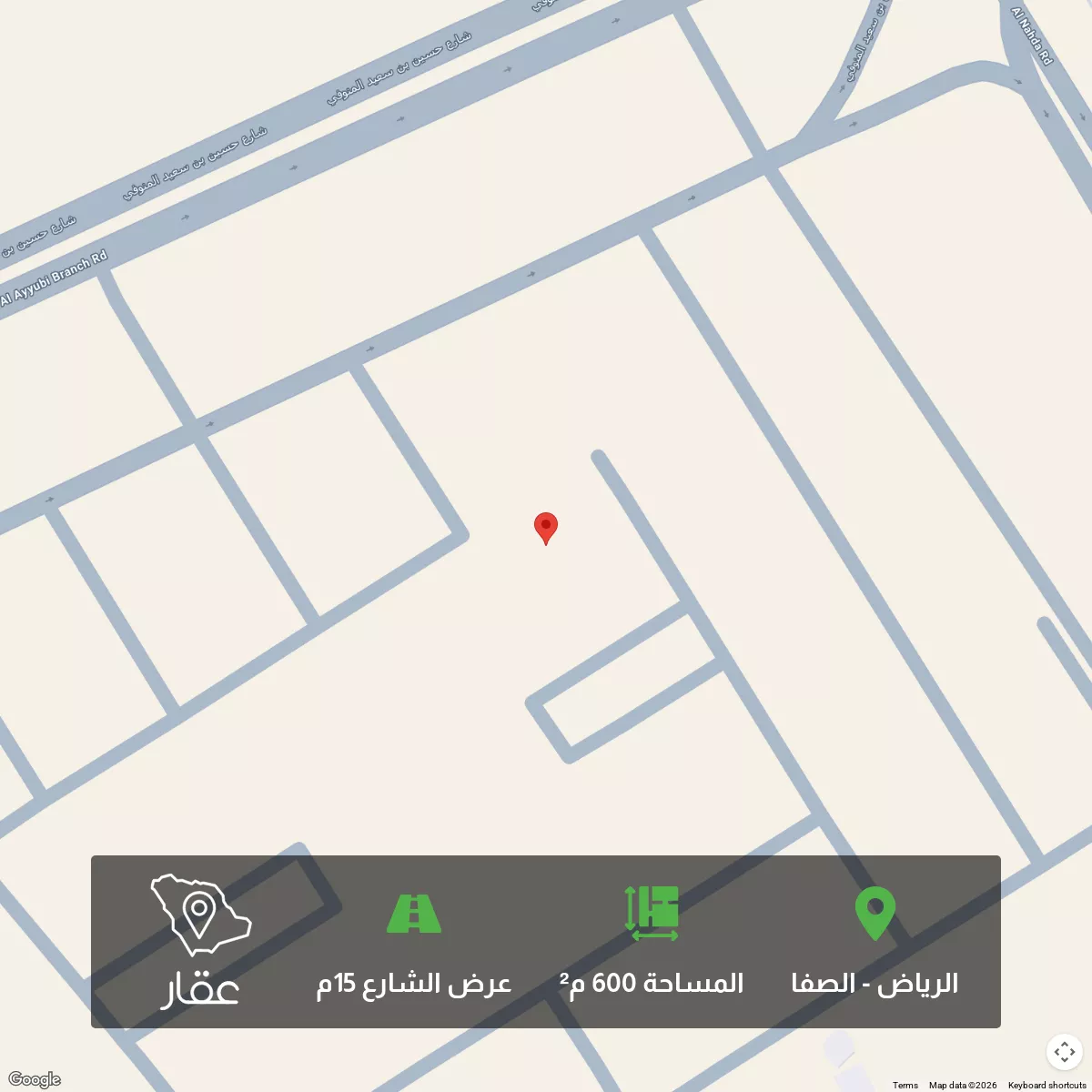 عرض على Aqarارض سكنيه بحي الصفا مساحه 600 م على شارع 15 قطعه 420 ' 422 موقع مميز قريب من طريق النهضه وقريب من طريق عمر بن الخطاب تبعد عن محطه ميترو جرير اقل من 2 كيلو