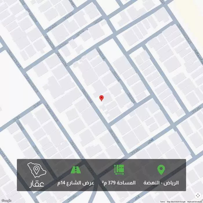 عرض على Aqarللبيع قطعه ارض حي النهضه غرب شارع سلمان الفارسي قريبه من جميع الخدمات ( مدارس - اسواق - مترو - باصات النقل العام ) مساحه 379.60 م الاطوال 13×29.2 شارع 14م غربي الارض عليها رخصة بناء 3 وحدات (( مدفوع ق...