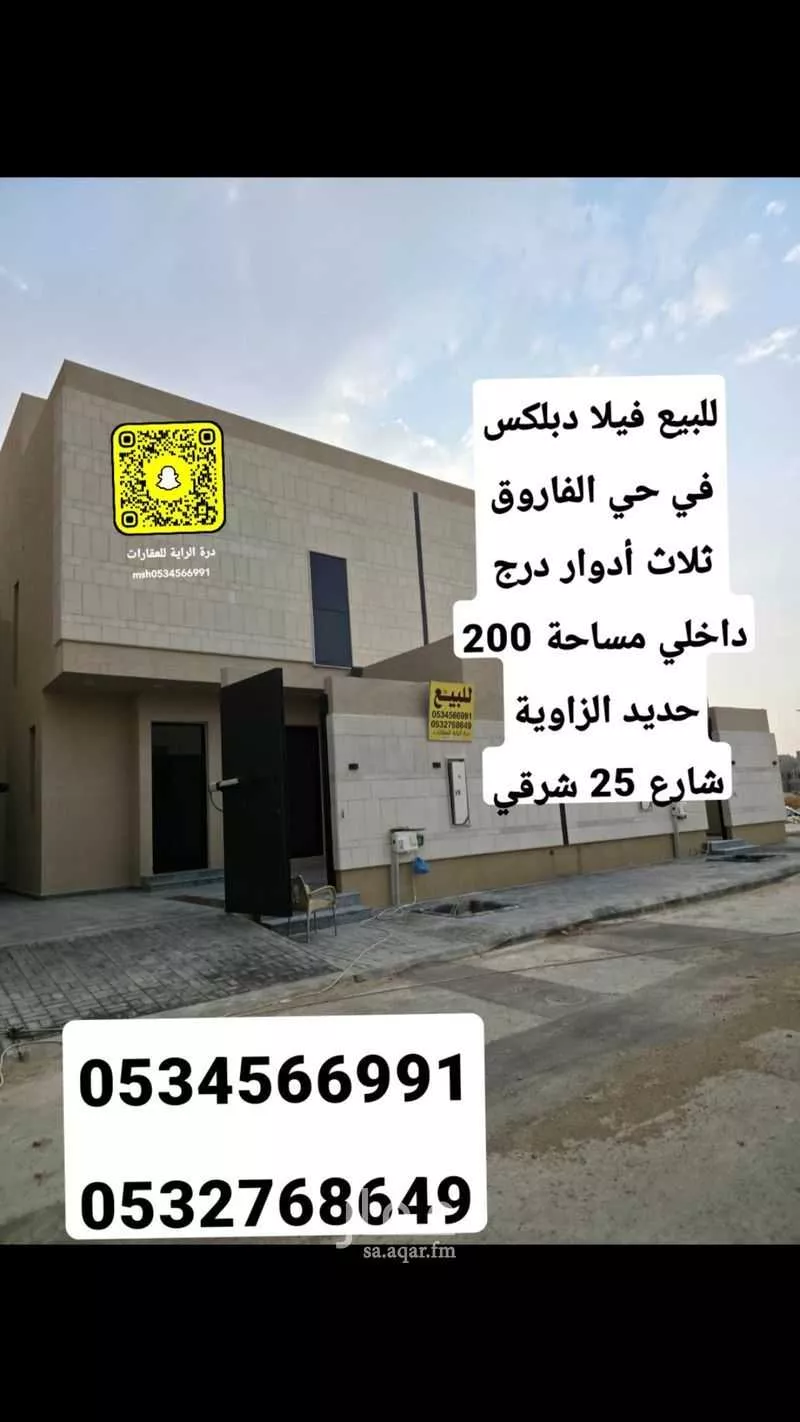 عرض على Aqarللبيــــــــع فيلا دبلكس في حي الفاروق مخطط المرازيم مساحة 200 م شارع 25 شرقي السعر 1.850.000 ريال قابل للتفاوض 0534566991 0532768649