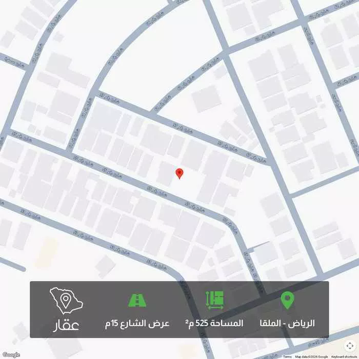 525 م² أرض في الملقا، الرياض معروضة بسعر ٥٬٧٧٥٬٠٠٠ ريال، أقل بنسبة 14% من متوسط سعر الحي البالغ ٦٬٦٩٩٬٦٨٠ ريال. بناءً على 122 عقار مشابه.