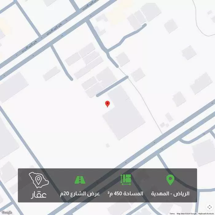 450 م² أرض في المهدية، الرياض معروضة بسعر ١٬٧٠٠٬١٠٠ ريال، أقل بنسبة 8% من متوسط سعر الحي البالغ ١٬٨٣٩٬٨٤٠ ريال. بناءً على 364 عقار مشابه.