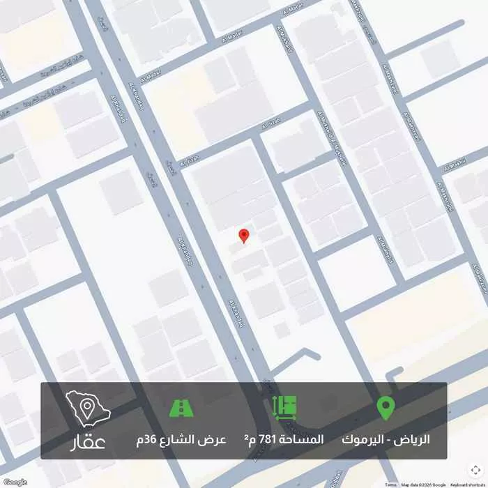 781 م² أرض في اليرموك، الرياض معروضة بسعر ٥٬٤٦٨٬٧٥٠ ريال، أعلى بنسبة 32% من متوسط سعر الحي البالغ ٤٬١٤٤٬٦٨٧٫٥ ريال. بناءً على 26 عقار مشابه.