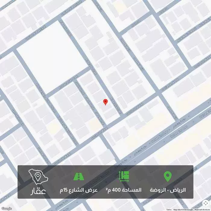 400 م² أرض في الروضة، الرياض معروضة بسعر ٢٬٠٠٠٬٠٠٠ ريال، أقل بنسبة 27% من متوسط سعر الحي البالغ ٢٬٧٥٠٬٠٠٠ ريال. بناءً على 49 عقار مشابه.