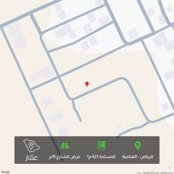 621 م² أرض في الغنامية، الرياض معروضة بسعر ٤٥٠٬٢٢٥ ريال، أقل بنسبة 9% من متوسط سعر الحي البالغ ٤٩٥٬٠٠٨ ريال. بناءً على 87 عقار مشابه.