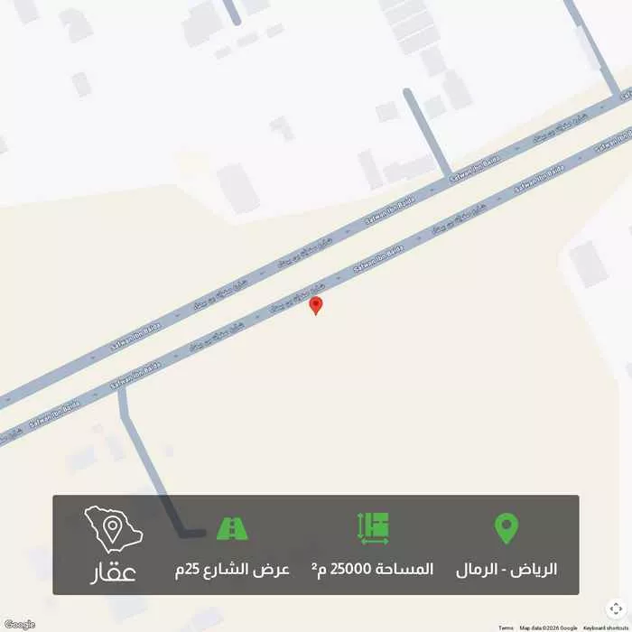 25000 م² أرض في الرمال، الرياض معروضة بسعر ٤٥٬٠٠٠٬٠٠٠ ريال، أعلى بنسبة 1775% من متوسط سعر الحي البالغ ٢٬٤٠٠٬٠٠٠ ريال. بناءً على 270 عقار مشابه.