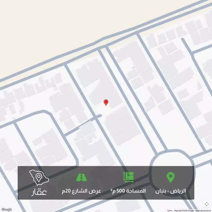 500 م² أرض في بنبان، الرياض معروضة بسعر ٢٬٠٠٠٬٠٠٠ ريال، أعلى بنسبة 149% من متوسط سعر الحي البالغ ٨٠٤٬٥٦٢٫٥ ريال. بناءً على 944 عقار مشابه.