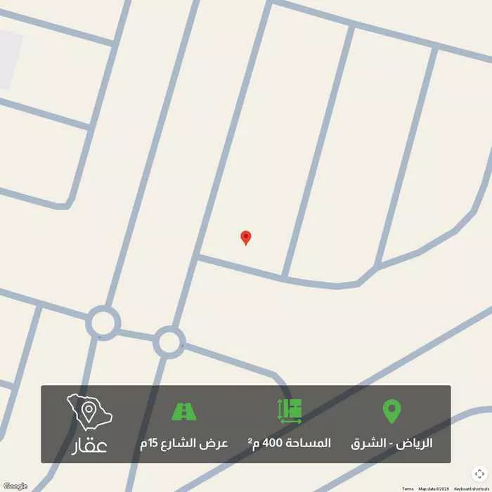 عرض على Aqarللبيع قطعه ارض سكنيه في حي الشرق مخطط المرجان مساحه ٤٠٠م الأطول ١٦×٢٥م جنوبيه شارع ١٥م ع السوم مباشر