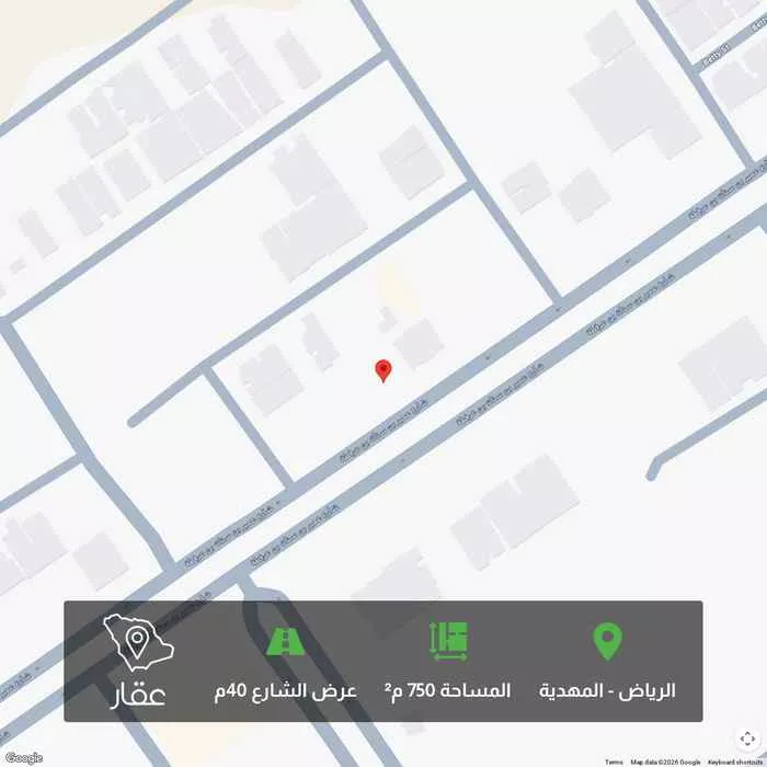 750 م² أرض في المهدية، الرياض معروضة بسعر ٢٬٦٢٥٬٠٠٠ ريال، أعلى بنسبة 43% من متوسط سعر الحي البالغ ١٬٨٣٩٬٨٤٠ ريال. بناءً على 364 عقار مشابه.