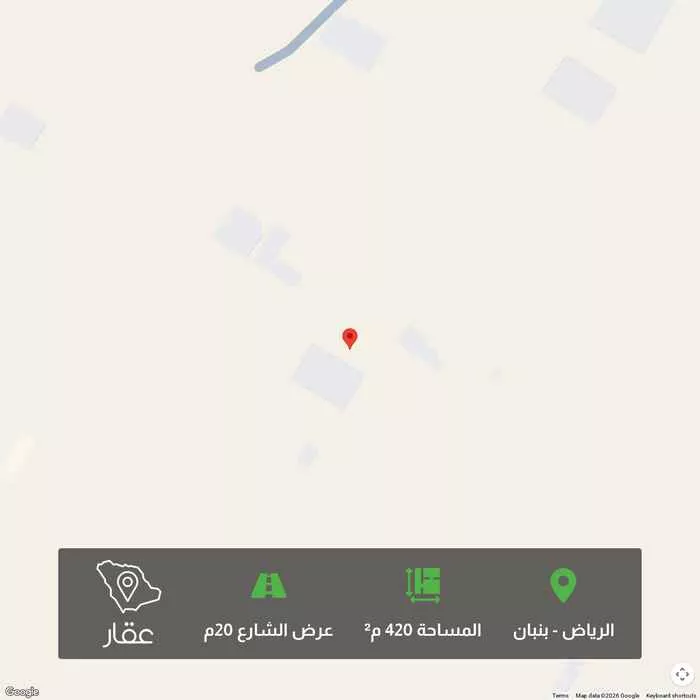420 م² أرض في بنبان، الرياض معروضة بسعر ١٬٣٠٠٬٠٢٦ ريال، أعلى بنسبة 62% من متوسط سعر الحي البالغ ٨٠٤٬٥٦٢٫٥ ريال. بناءً على 944 عقار مشابه.