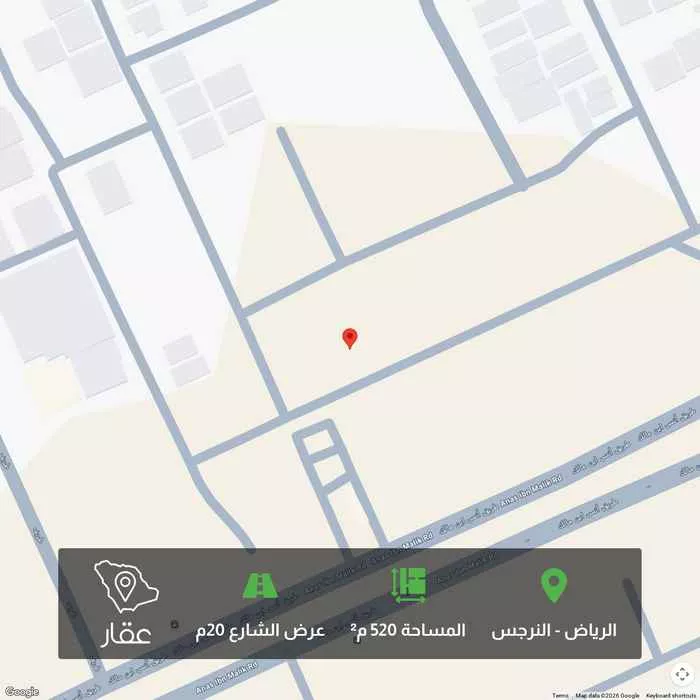 عرض على Aqarأرض سكنية بحي النرجس موقع مميز شمال أنس بن مالك الأطوال ٢٠م في ٢٦م الشارع: ١٥م جنوبي الأرض من ضمن البلك كامل والبيع للجميع مناسب لبناء أدوار أو فلل