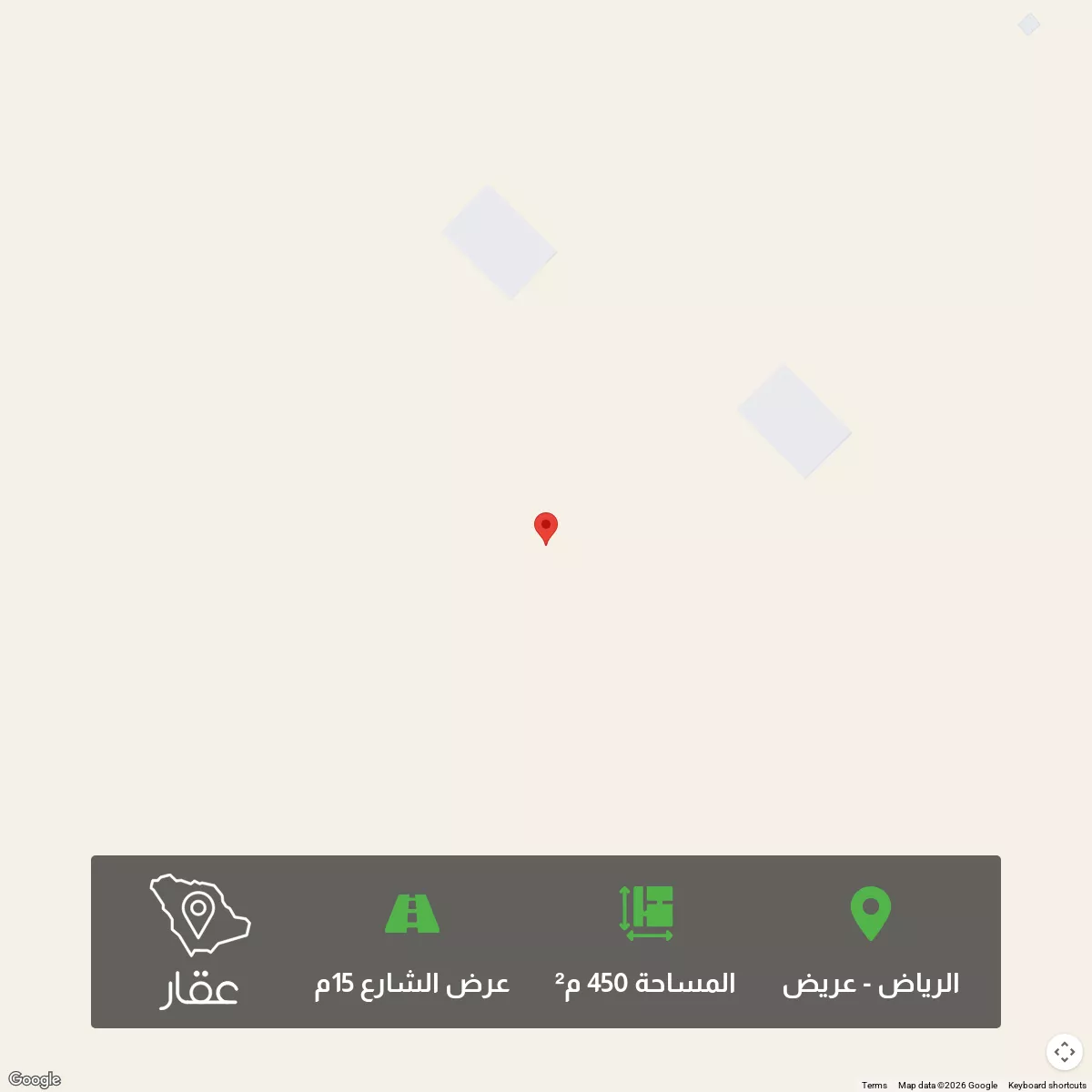 450 م² أرض في عريض، الرياض معروضة بسعر ٣٥٠٬٠٠١ ريال، أقل بنسبة 12% من متوسط سعر الحي البالغ ٣٩٩٬٦٠٠ ريال. بناءً على 653 عقار مشابه.