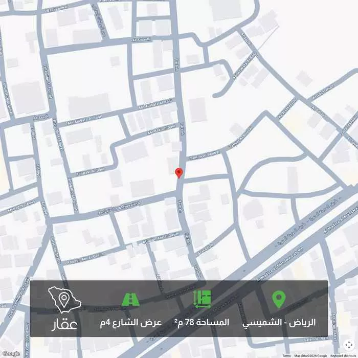 78 م² أرض في الشميسي، الرياض معروضة بسعر ١٦٠٬٨٧٤ ريال، أقل بنسبة 55% من متوسط سعر الحي البالغ ٣٥٦٬٥٣٧٫٥ ريال. بناءً على 10 عقار مشابه.