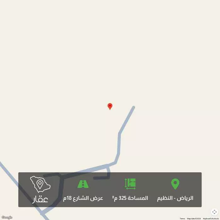 325 م² أرض في النظيم، الرياض معروضة بسعر ٦١٧٬٥٠٠ ريال، أقل بنسبة 18% من متوسط سعر الحي البالغ ٧٥٣٬٠٠٠ ريال. بناءً على 228 عقار مشابه.