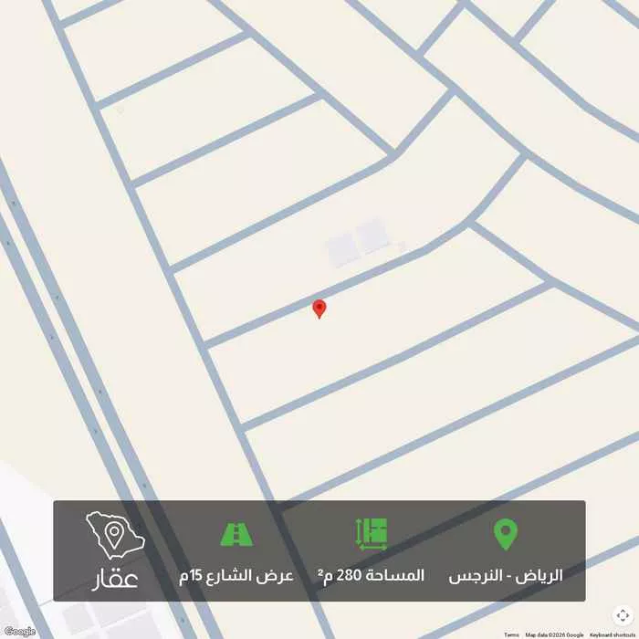 عرض على Aqarأرض للبيع مساحة 280 متر شمالية شارع 15 متر جنوب طريق الامير خالد بن بندر
