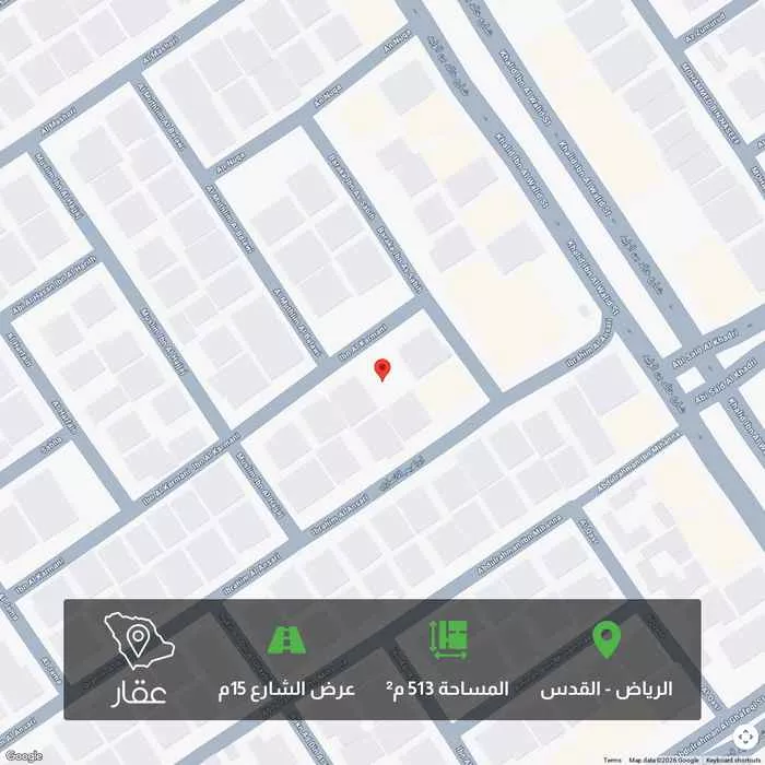 عرض على Aqarتحديث للبيع قطعه ارض سكنيه في حي القدس قايم عليها فيلا قديمه المساحه ٥١٣ الاطوال ١٩&٢٧ الواجهه شماليه عرض الشارع ١٥ البيع ٣ مليون