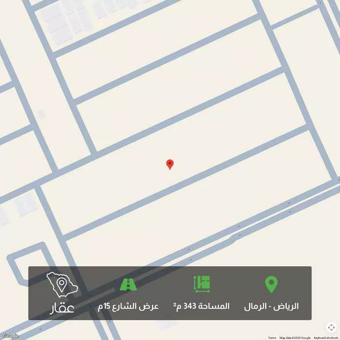 343 م² أرض في الرمال، الرياض معروضة بسعر ١٬٥٤٦٬٨٧٥ ريال، أقل بنسبة 36% من متوسط سعر الحي البالغ ٢٬٤٠٠٬٠٠٠ ريال. بناءً على 270 عقار مشابه.