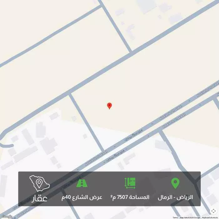 7507 م² أرض في الرمال، الرياض معروضة بسعر ١٦٬٥١٦٬٥٠٠ ريال، أعلى بنسبة 588% من متوسط سعر الحي البالغ ٢٬٤٠٠٬٠٠٠ ريال. بناءً على 270 عقار مشابه.