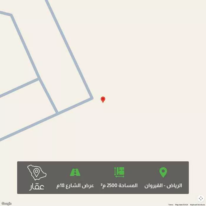 عرض على Aqarأرض للبيع – حي القيروان المساحة: 2,432.15م² الشوارع: 18م + 18م + ممر 6م العمق: 54م أرض مميزة بواجهات متعددة، موقع حيوي وقريب من الخدمات. تتوفر عروض أخرى بلكات سكنية وتجارية بأسعار منافسة.