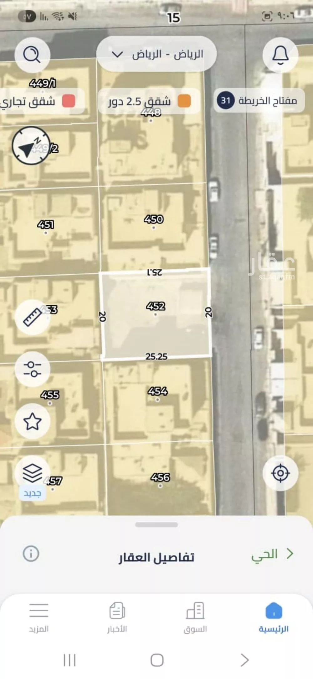 * *شركة بو فاوند العقاريه* * رقم العرض : 1612 * النوع : ارض سكني للبيع * الحي : بدر * مخطط : 2003 / ب * قطعة : 452 * الشارع : 15 م شرقي * المساحة : 500 م² * الاطوال 20 × 25 عمق * السعر : 2500 ريال للم...