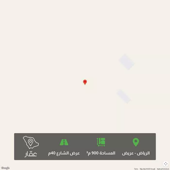 عرض على Aqarللبيع ارض تجاري سكني في خي عريض مساحة٩٠٠م طولها على الشارع٢٥م