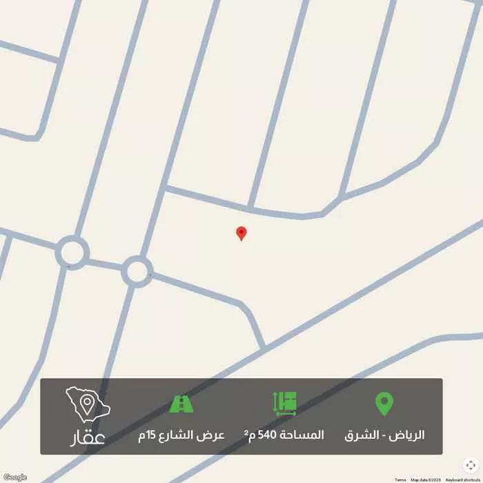 540 م² أرض في الشرق، الرياض معروضة بسعر ١٬٤٠٤٬٠٠٠ ريال، أعلى بنسبة 134% من متوسط سعر الحي البالغ ٥٩٨٬٩٥٠ ريال. بناءً على 650 عقار مشابه.