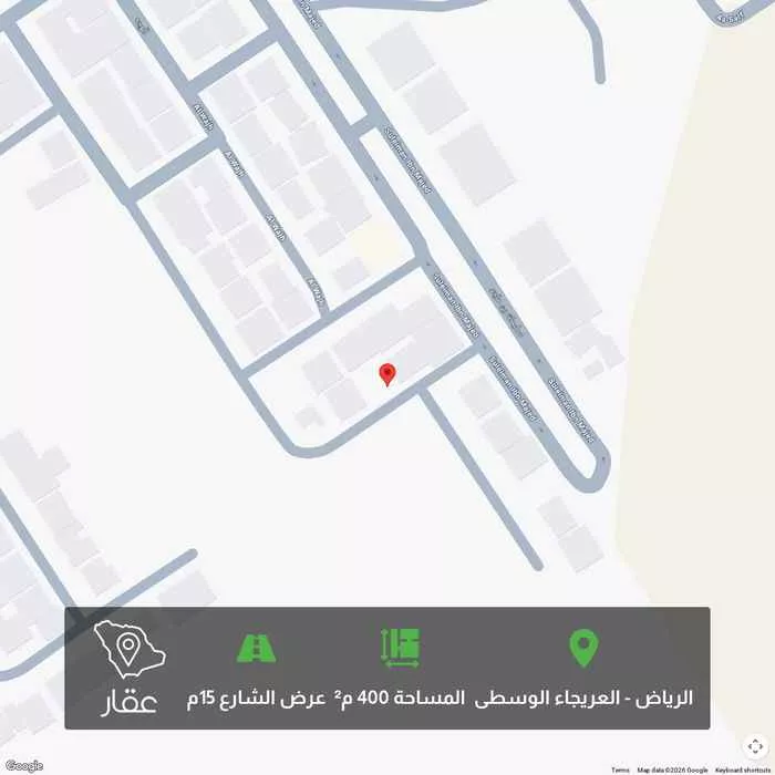 عرض على Aqarhttps://maps.app.goo.gl/hJHCDLtUVgP1rHab7?g_st=ipc ارض للبيع فى العريجا مساحتها ٤٠٠ متر واجهه جنوبيه شارع ١٥ مخطط ٢٠٠٨/د قطعه رقم ٣١/٩ اطوالها ٢٠×٢٠ سعر المتر ٢٦٢٥ ريال للمتر سوم توجد رخصه بناء قديمه ...