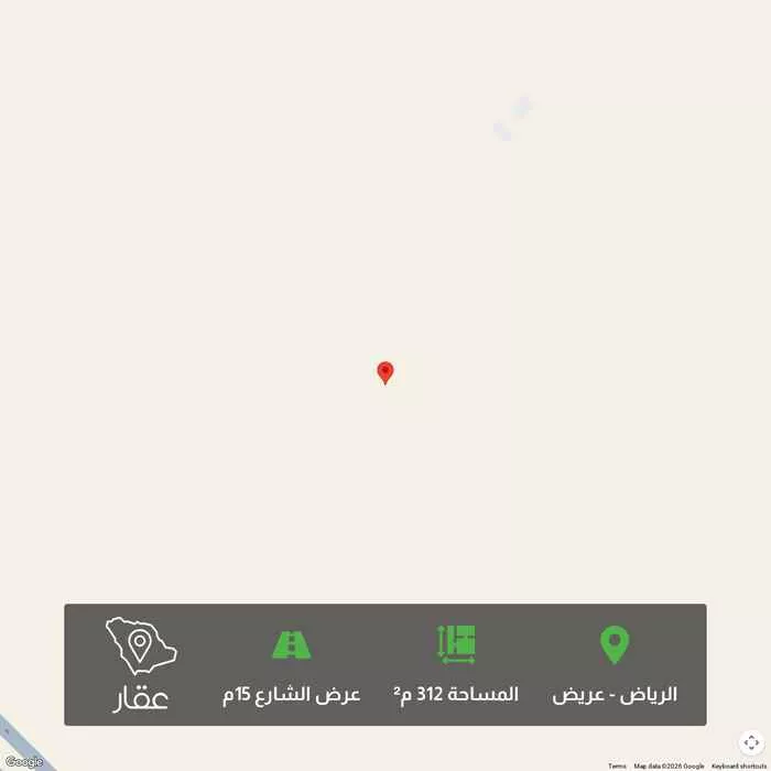 312 م² أرض في عريض، الرياض معروضة بسعر ٣٥٠٬٠٠٠ ريال، أقل بنسبة 12% من متوسط سعر الحي البالغ ٣٩٩٬٦٠٠ ريال. بناءً على 653 عقار مشابه.