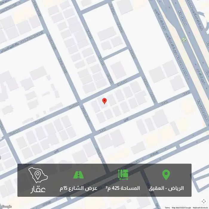 425 م² أرض في العقيق، الرياض معروضة بسعر ٣٬٨٢٥٬٠٠٠ ريال، أقل بنسبة 19% من متوسط سعر الحي البالغ ٤٬٧٥٠٬٠٠٠ ريال. بناءً على 43 عقار مشابه.