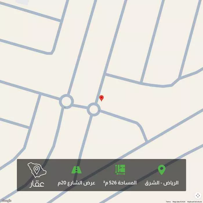 526 م² أرض في الشرق، الرياض معروضة بسعر ١٬٤٩٩٬١٠٠ ريال، أعلى بنسبة 150% من متوسط سعر الحي البالغ ٥٩٨٬٩٥٠ ريال. بناءً على 650 عقار مشابه.