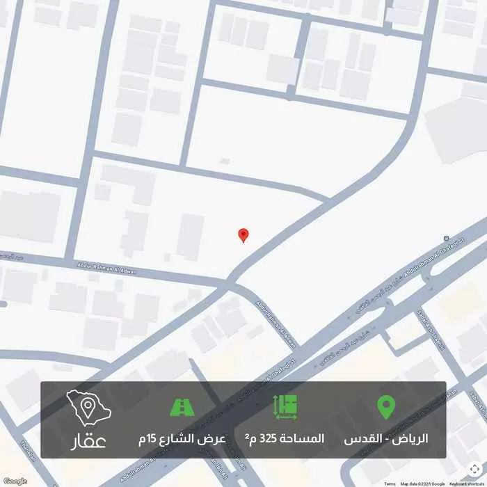 عرض على Aqarارض سكنية. مساحة 324 م شارع 15 جنوبي في الجزء الجنوبي من مخطط الراجحي بحي القدس سعر المتر 7500 ريال للمتر إبراهيم المرشد 0555218247