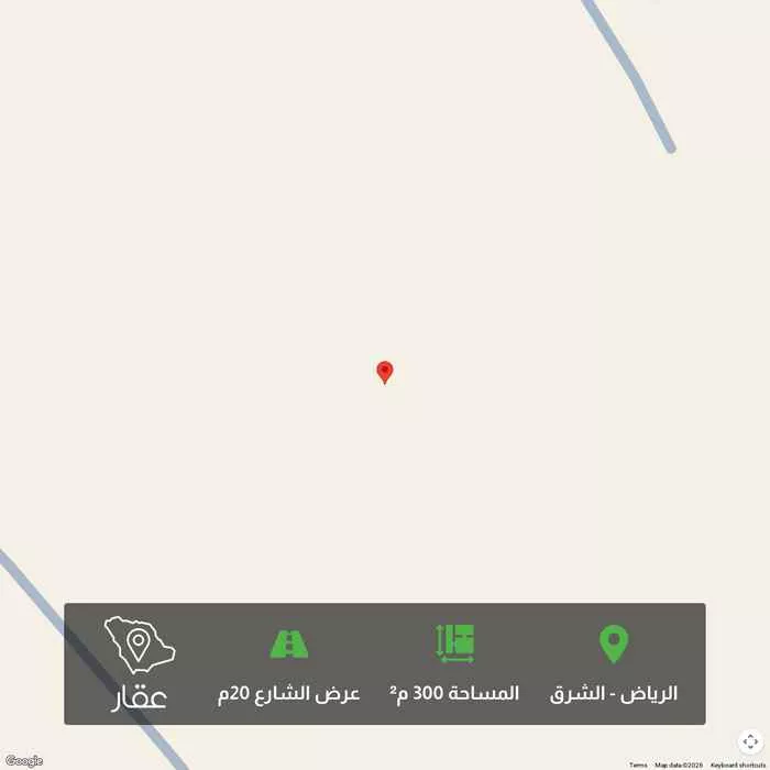 300 م² أرض في الشرق، الرياض معروضة بسعر ٦٦٠٬٠٠٠ ريال، أعلى بنسبة 10% من متوسط سعر الحي البالغ ٥٩٨٬٩٥٠ ريال. بناءً على 650 عقار مشابه.