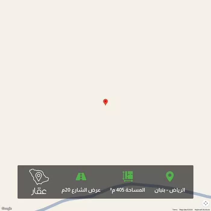405 م² أرض في بنبان، الرياض معروضة بسعر ٦٨٨٬٥٠٠ ريال، أقل بنسبة 15% من متوسط سعر الحي البالغ ٨٠٨٬٥٠٠ ريال. بناءً على 949 عقار مشابه.
