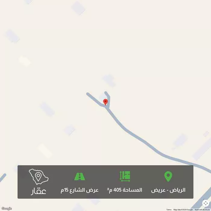 عرض على Aqarللبيع أرض سكنية مميزة في حي عريض – الرياض المساحة: 405 متر مربع الأطوال: الواجهة: 15 متر العمق: 27 متر الموقع: حي عريض – موقع هادئ ومناسب للسكن المميزات: تقع في موقع مميز داخل الحي يحدها من الخلف ملعب...