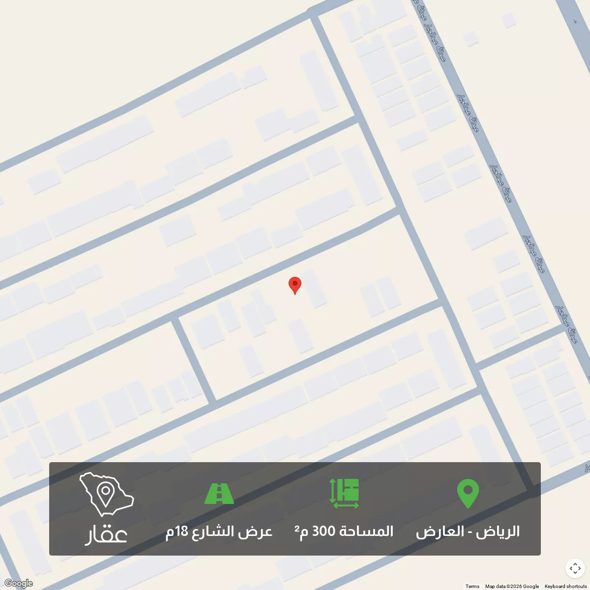 عرض على Aqarللبيع ارض سكنية في حي العارض مساحة 300م واجهة شمالية بطول 12م في عمق 25م شارع 18م سعر المتر 8500ريال قابل للتفاوض