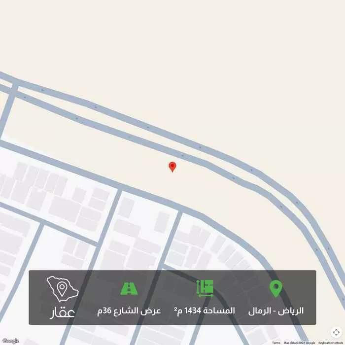 عرض على Aqarللبيع ارض تجارية حي الرمال ( تنال ) المساحه 1434.38م متظاهره شارع 36م شرقي و 18 غربي رقم القطعه / 242 رقم المخطط / 3242 السوم / 3800 للمتر الاطوال 36 ×40 وفق الله الجميع