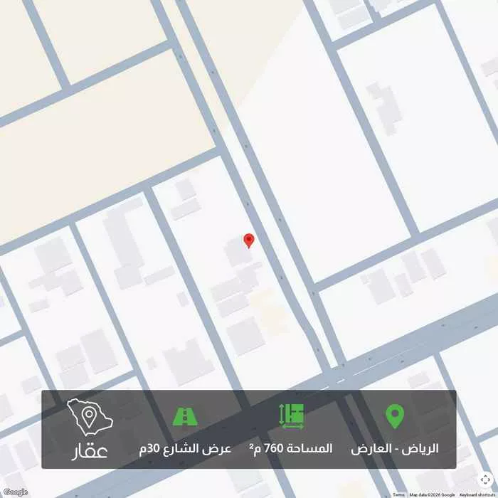 عرض على Aqar**فرصة عقارية للشركات والمطورين للبيــــــــع أرض تجارية .* *-الموقع :* حي العارض شمال طريق القوات . طبيعة الأرض ممتازة . *-المساحة :* 760.5م٢ *-الواجهة :* شرقية. * - عرض الشارع :* 30م٢ *-الاطوال: عرض...